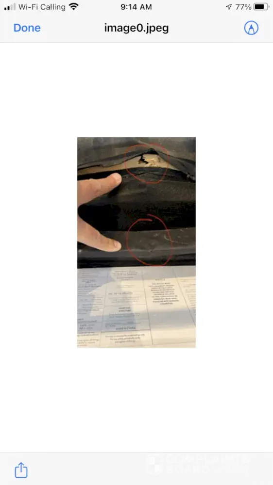 An email and pictures were sent on October 2, 2021. We follow up regularly and they have been of no assistance.