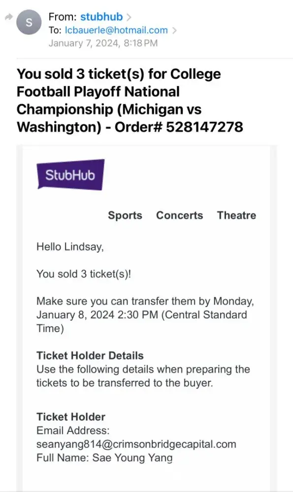 Subject: StubHub customer support update Order - [protected]
