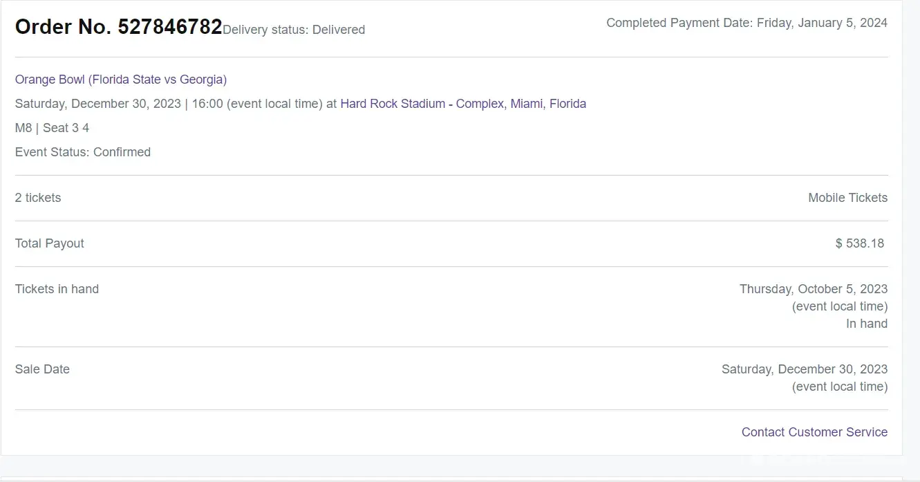 I provided proof of the following via email to StubHub: I bought the tickets directly from the Orange Bowl and I provided an invoice. I provided emails documenting the email of tickets I sent to the buyer. I sent screenshots of the tickets indicating the buyer had claimed the tickets. I provided an email from my ticket executive saying the tickets were scanned. The tickets can only be sold once. Once the tickets are emailed and claimed they can’t be sold again. No screenshots can be taken either because the software won't allow it. I am not sure why the buyer did not get into the venue if that is even true. However, I did everything I was supposed to before and after the sale. I provided StubHub with my ticket executive’s email and telephone number so StubHub could contact them if they needed any additional information. However, StubHub has failed to reach out.