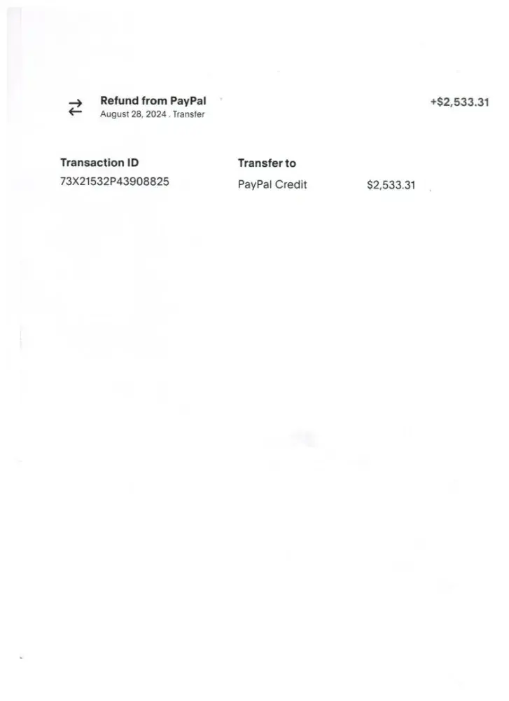 Claimed loss: $1,736 to be refunded back to PayPal or classified to PayPal as being Fraudulent