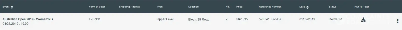 I bought 2 tickets for the ATP 2019 Women's finals for $623.35.