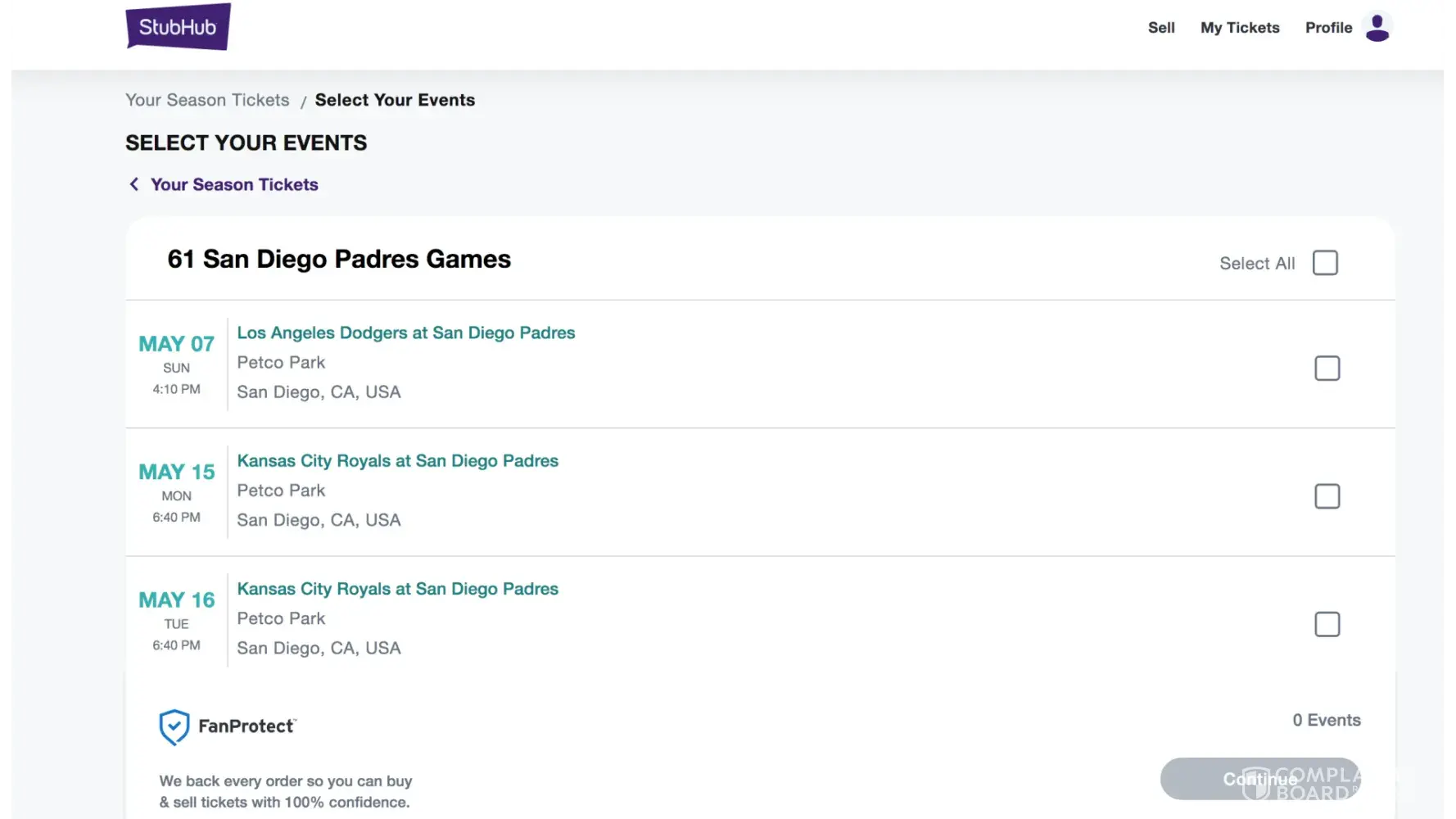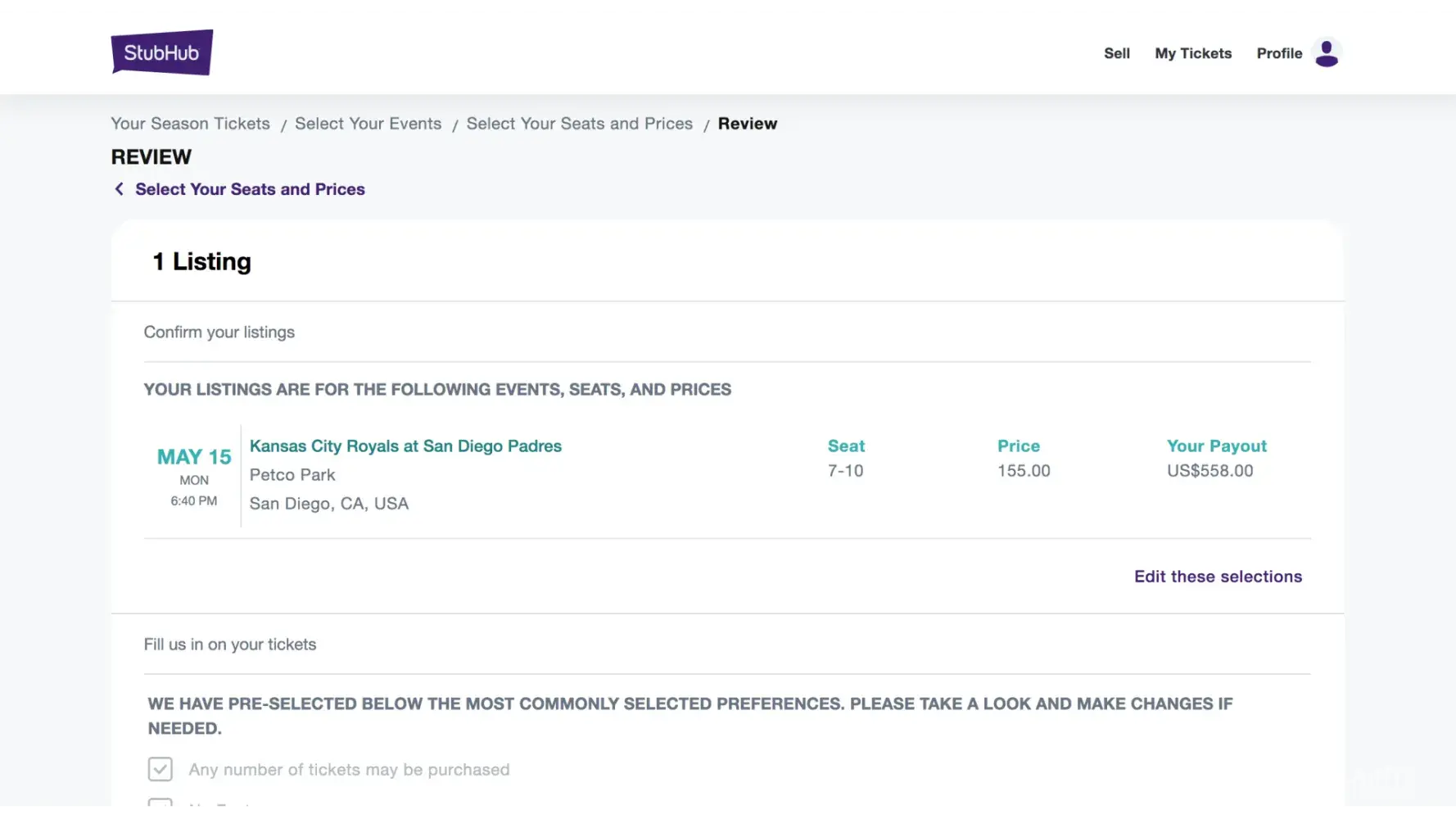 StubHub Profile