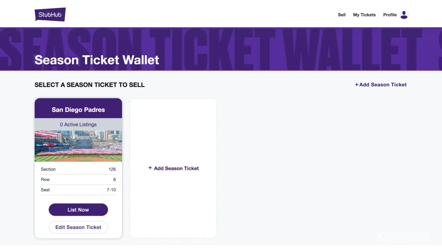 StubHub MLB season ticket holder seller experience