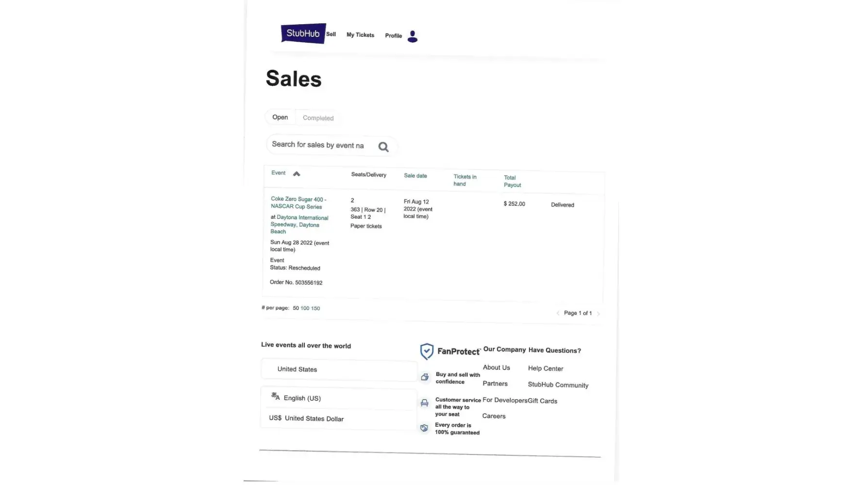 In June of 2022, I posted a sell for tickets to a race at Daytona International Speedway. But when I went on the website to download the tickets to stubhub for sale, these tickets were not available until August of 2022. Stubhub notified me by email that these tickets had sold and who they were to be sent to. on Spetember 14th, I called Stubhub to ask where the money was for the tickets that were sold to someone in Daytona Beach on August 12th and was delivered that same week by UPS. I notified Stubhub and they stated that I was not to receive the money due to breach of contract that they were sold in July. To my knowledge that was not true.