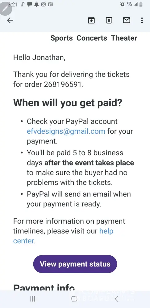 sold tickets on stub hub and have yet to receive payment