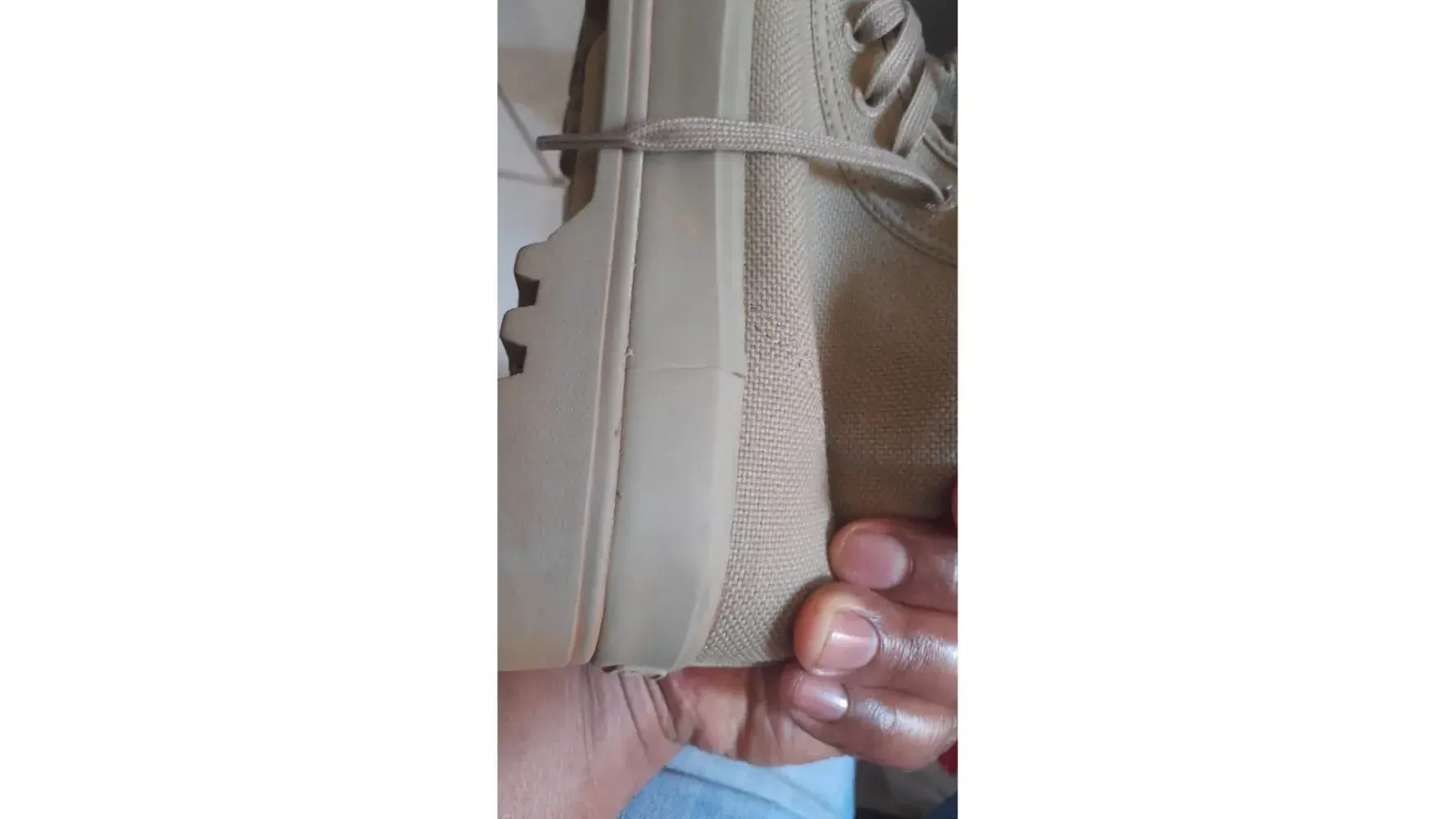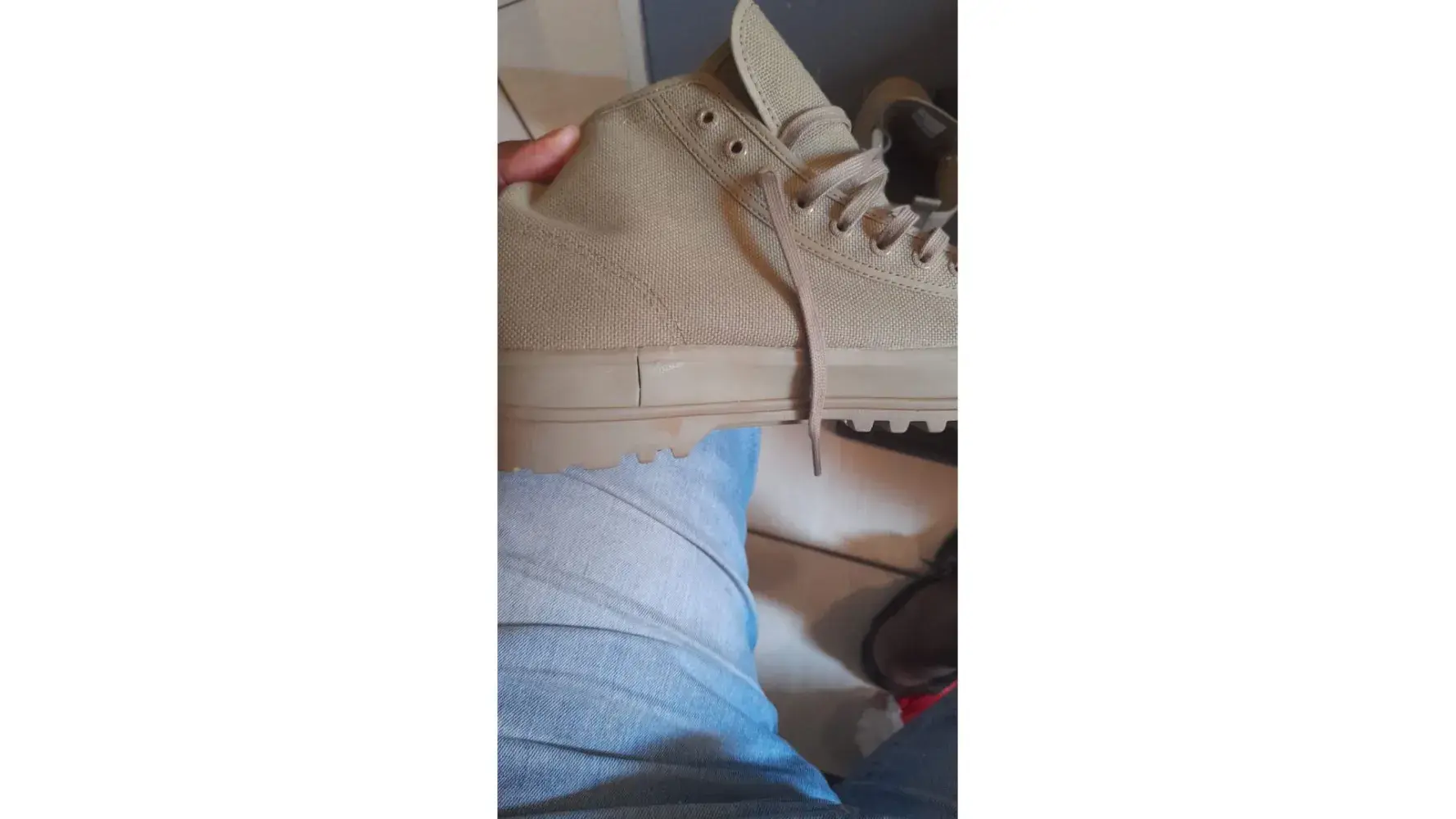 Torn sneaker after being worn once