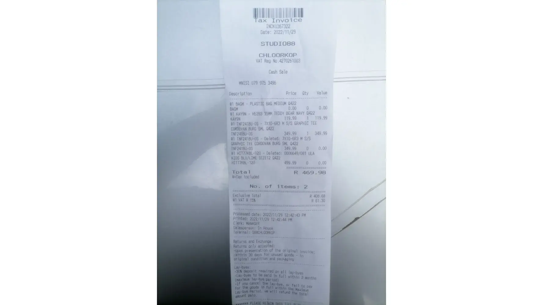 Yesterday was at studio 88 at vanderbijlpark in vall mall, I hv laybyed my son vans for Christmas to my surprise wen I went to de store to pay n collect the shoe, they tell stories that it was raining in de stock room n unfortunately the shoe got damaged, I dem asked for my the refund they told me only the regional cn do the refund, I'm so disappointed, I'm giving you guys 3days max to sort ur problems or de media my lawyer n police should b involved.