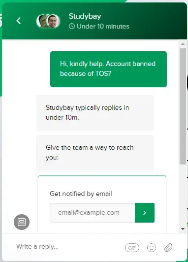 Studybay emailssupport@studybay.com100%Confidence score: 100%Support