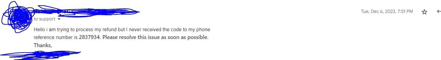 Desired outcome: Refund my money immediately.