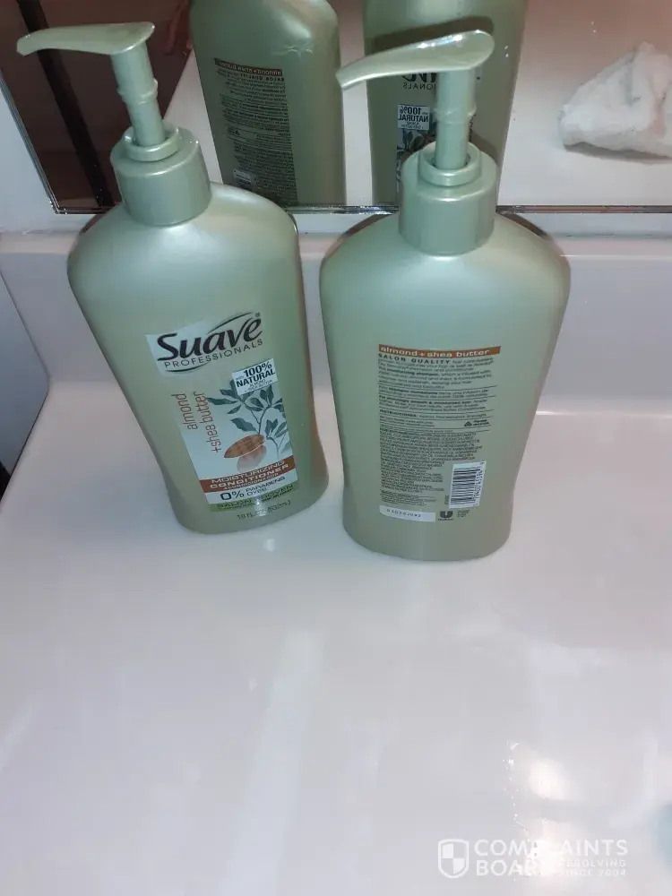 I have been using the "new" shampoo and conditioner(almond shea butter) for almost a week... but I refuse to use it ever again. I was trying to be frugal and heal my hair... but obviously suave can't... the price should go back down to 89 cents a bottle... that is about how much it is worth if that. I am so disappointed. I used suave only when I was growing up and never had a problem.. now it seems they are duping everyone into buying their product. and it is CRAP. My hair has never been this bad... ever.. even when I was in Cosmetology. Then I try to call and complain...which I have never had to do in my life. ever. and they don't have anyone you can talk to on the weekends.. not even automated.. which for as big a company it is surprised me.. I will never ever buy anything from suave... you ruined my hair.. I mean I have bought bad shampoo and conditioner before but NEVER this BAD! i want a refund and new hair now how are they going to pay for that?