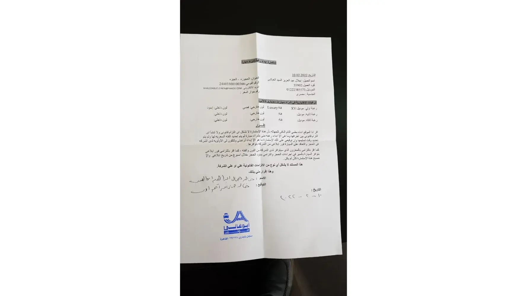 Hereby I send you this complaint and screen shots of the WhatsApp messages with the employees. We have been bypassed by employees to pass our car to other customers who will benefit from the difference in price of dollar as compared to the Egyptian currency. By recent drop of the Egyptian pound this mistake from employee costs us 400, 000 Egyptian pounds extra. Hence, we claim our right in the car we reserved with the price of December 2022 in Egyptian currency.
