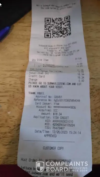 Read full complaintIs Subway Legit?