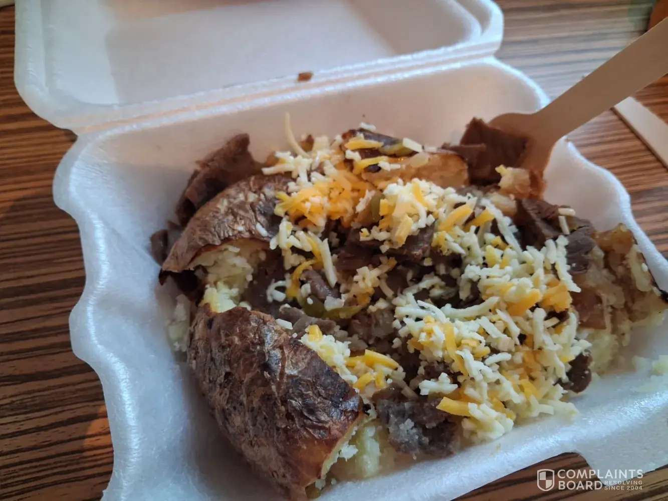 Terrible experience from start to finish. Screens used to place order are frustrating, guy said they were slow, dial up Internet was quicker 30 years ago. Ordered a cheese steak spud. It came with no butter and no cheese. When I took it back he told me the butter is in the cheese and had melted. I said there was no cheese on it. He put a a tiny amount if...
