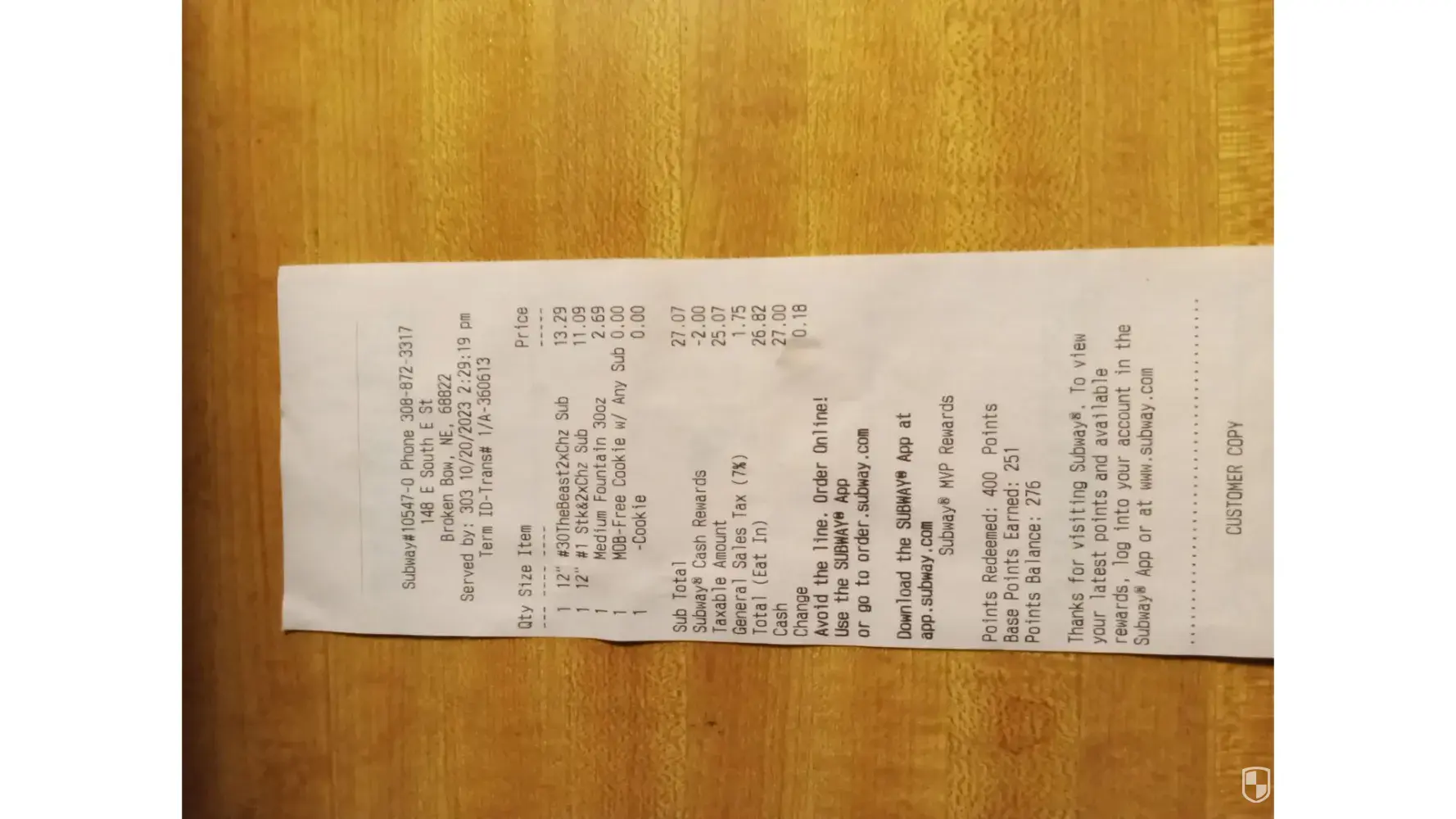 On top of all this, today I placed an order but when I showed up, the app looked like the order hadn’t gone through. I tried to place it and kept getting an error message. My options were “place the order†or “start overâ€. Since the order didn’t go through and the line was long I gave up and left. Over an hour later I noticed Paypal notified me of a charge to Subway. The order *didgo through even though the app said it hadn’t. I called the restaurant and they looked up the order (note: they looked it up when I called more than an hour later and finally saw the order.) since I’d already paid and have no faith that a refund would be an easy process I went and got the order.