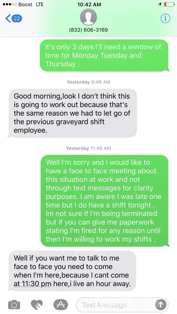I'm not sure How do I get in contact with a owner of a subway that is franchised, 21183 Kuykehndahl Rd Spring Tx 77379, I lost my car due to Hurricane Harvey and my boyfriend was hired on as a worker . Showed up to every shift on time and the one time he made it 15 minutes late to pick me up from work which he already discussed with the hiring manager at the Subway location prior to being hired on in the interview process that we share a vehicle, well she texted him to terminate him & removed him completely off the schedule without notice when he went to work his overnight shift because he showed up late one time . It's unprofessional and something that should be addressed by the owners franchised or not, I want to know if this is how Subways operates with their business? I left my job early to get him to work and he go in and they tell him she took him off the schedule. She texted trying to get him to quit and it is like one way or the other she wanted to force him out the door probably because she is a manager having relations with a employee and he knew about it .
