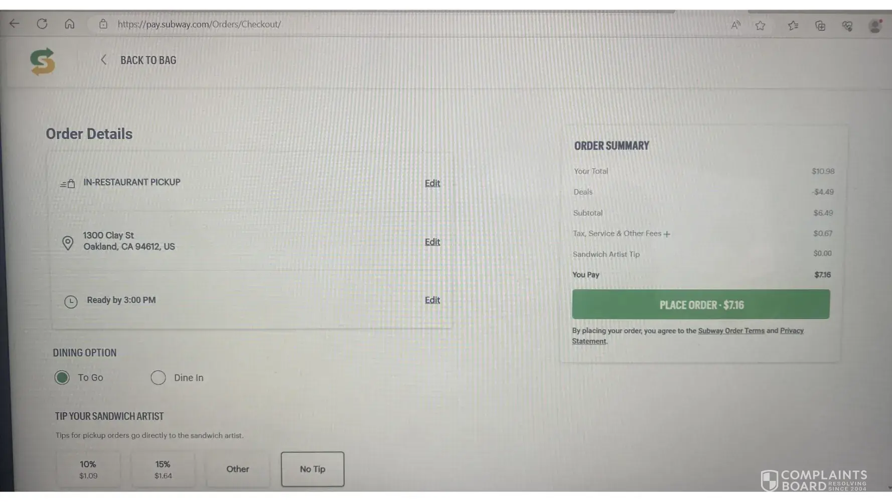 Read full complaintDisappointed with Subway's Lack of Communication and Delayed Refund
