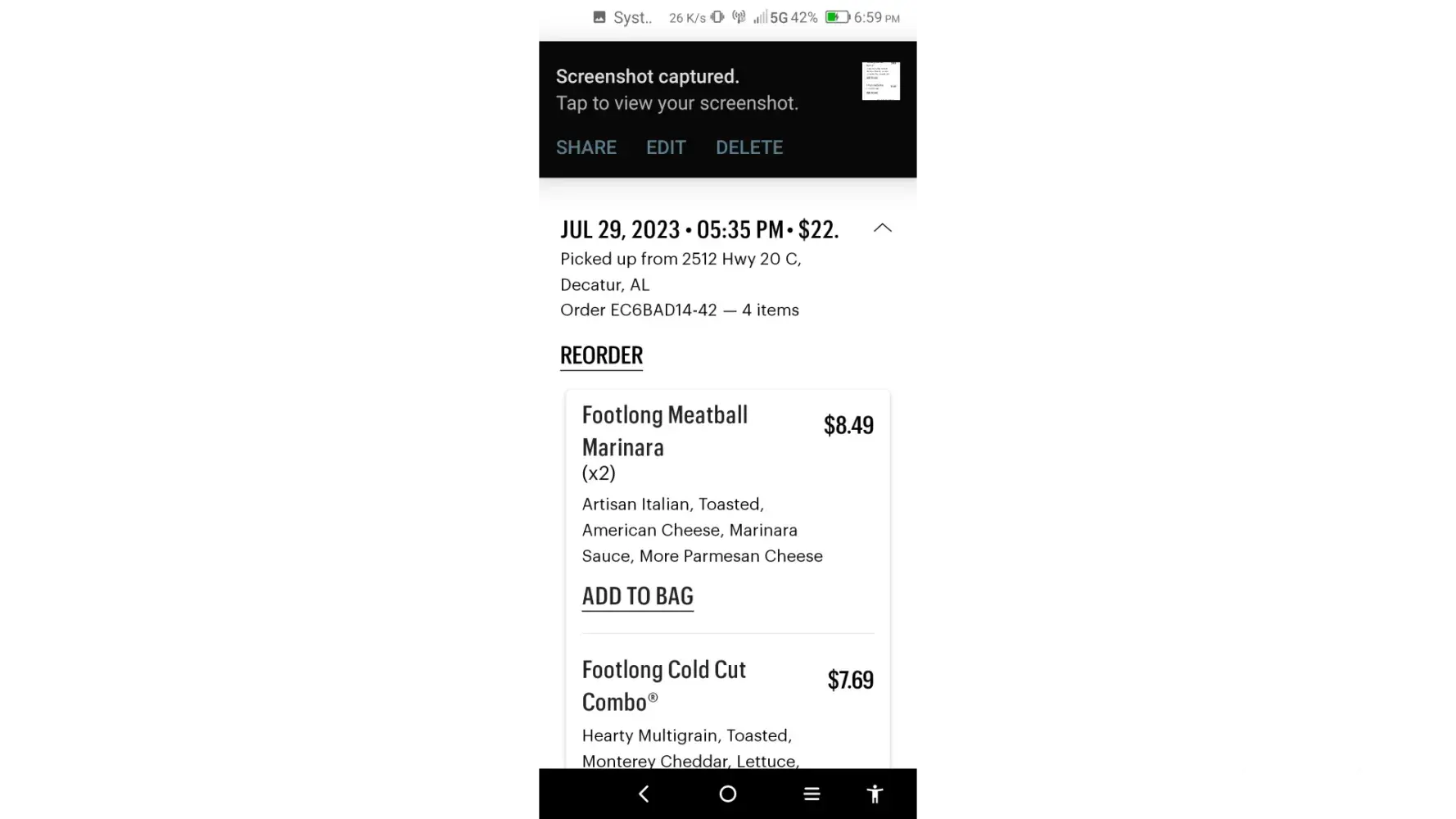 I ordered from the subway that’s located in the Walmart located off of Highway 1187 in Burleson Texas. I ordered it on the SUBWAY® website and DoorDash delivered it. When the driver handed it to me I noticed it was very late. We both inspected it and I took photos. All the veggies I requested but no cheese and no meat. $22 for a plain veggie sandwich. Either the person making the sandwich was trying to make a joke or they don’t seem to know what they’re doing. Tried calling no answer on the phone.