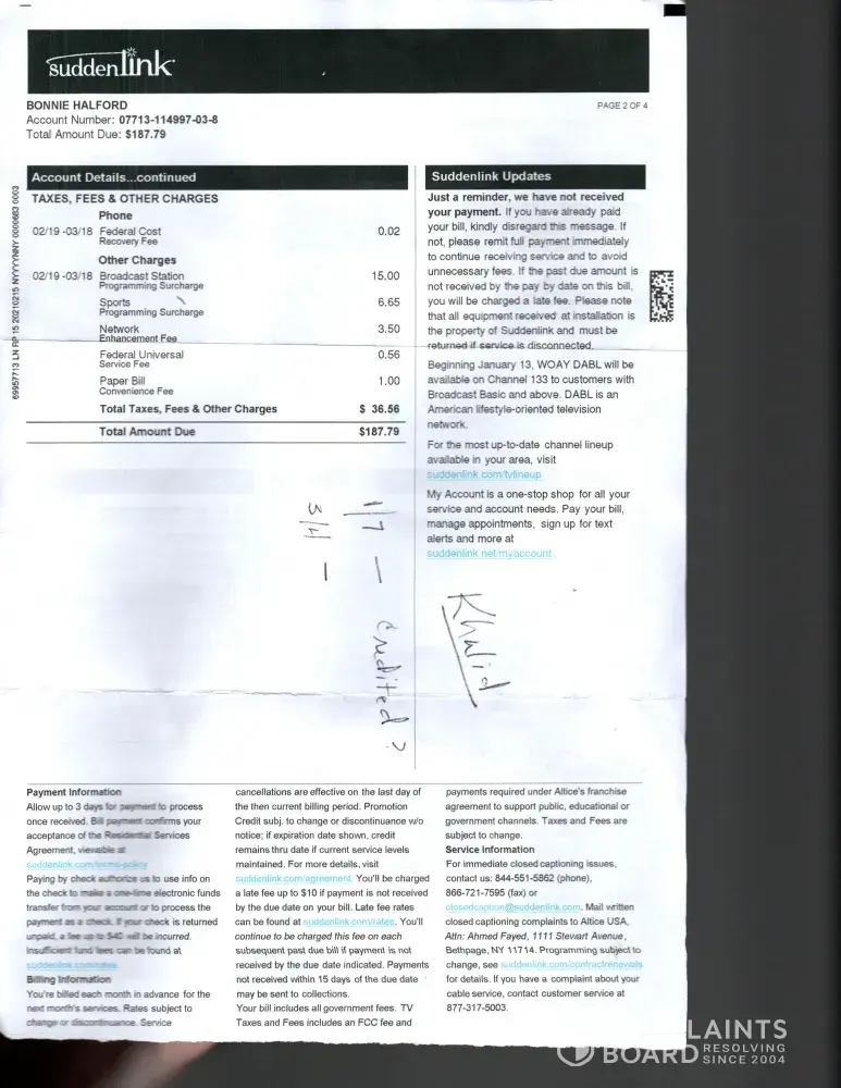 Altice one suddenlink billing statement disconnection