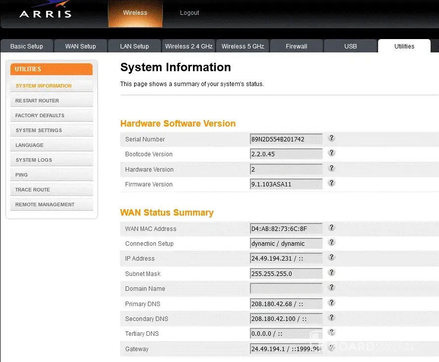 I have Suddenlink 50Mbs internet only. I am using the Suddenlink modem/wireless combo. The modem is rebooting several times per day. There are no ethernet wires involved, everything in the house is wireless. There are 5 computers a wireless printer, 2 iPhones and an iPad on the wireless network. The device is an ARRIS and the attached photo contains some info about it.