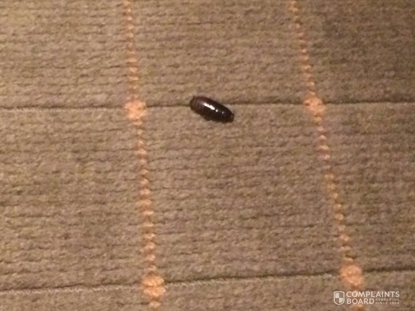 3. When my wife and I arrived back at our room on Friday evening, we were welcomed by a Giant Roach strolling in the room – of which I have a photo for posterity (attached below). This was the final straw that brought me downstairs to have a discussion with the Manager.