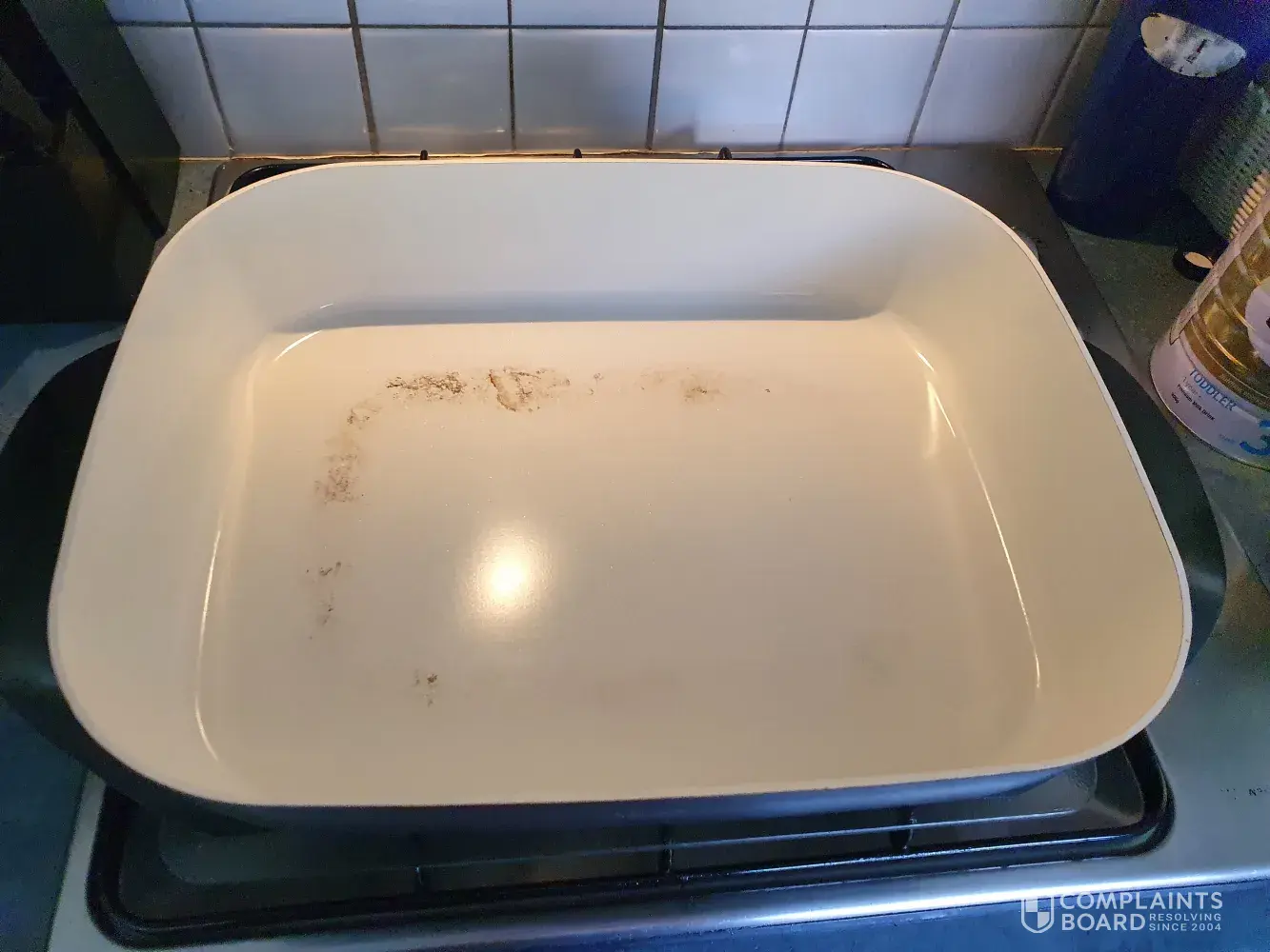 We bought the Duraceramic frying pan 1 week ago, and as soon as we started cooking in it, the food was sticking to the bottom of the frying pan and burning...despite there being Olive oil also in frying pan.. this is the Second time we have bought this product..thinking it may have been improved, but no, it's still the same. The frying pan is very hard to clean and is actually stained from the food cooking in it, no matter how hard we scrub it the marks will not come off.