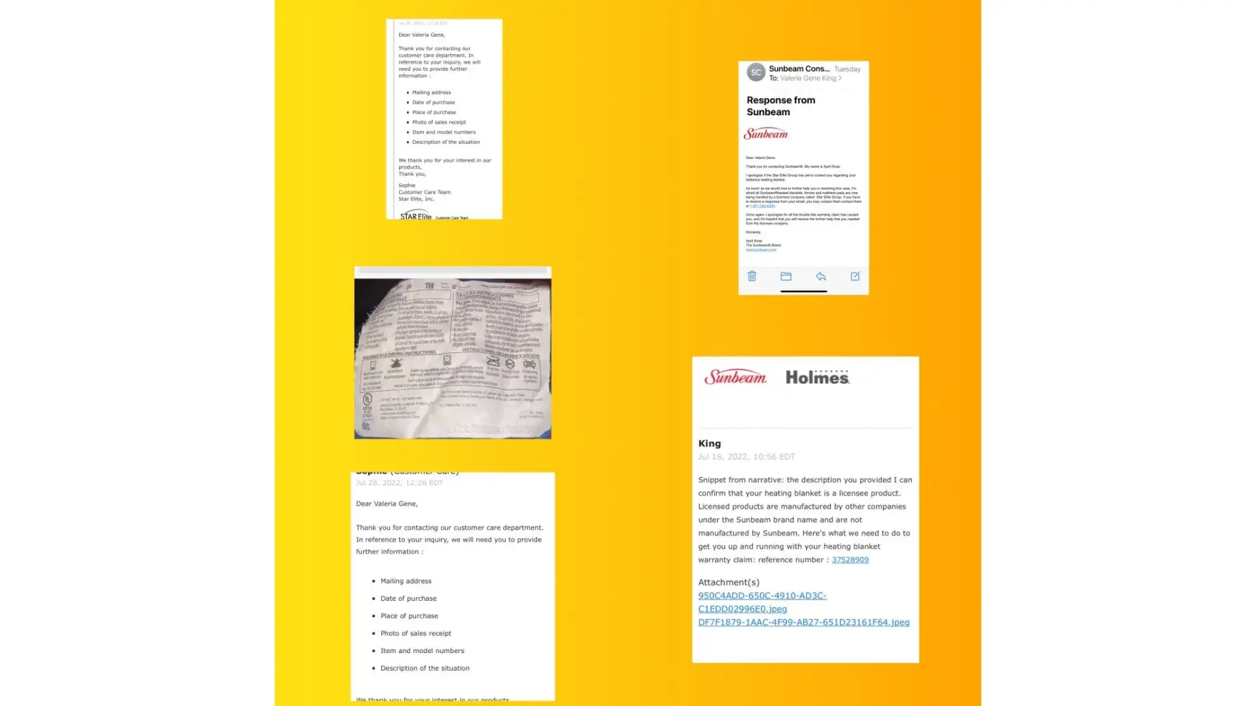 Ordered a Sunbeam electric blanket from Amazon. It worked a little over a year and then stopped working. Received a E4 on the controller. Contacted customer care through email. Send emails back-and-forth for a little bit until they asked for proof of purchase and pictures of the blanket sent it to them only for them to go silent on me. So a week later contacted customer care through email yet again, same thing got to a certain point and then they went silent on me. Contacted them again through email this time I told them this is my third time requesting help all they did was combine my other two requests and put them into one. Every time I send a message through these emails they never respond back. I just want my electric blanket fixed, which has a five year warranty. Sunbeam used to have great blankets when I was younger that lasted years what happened?