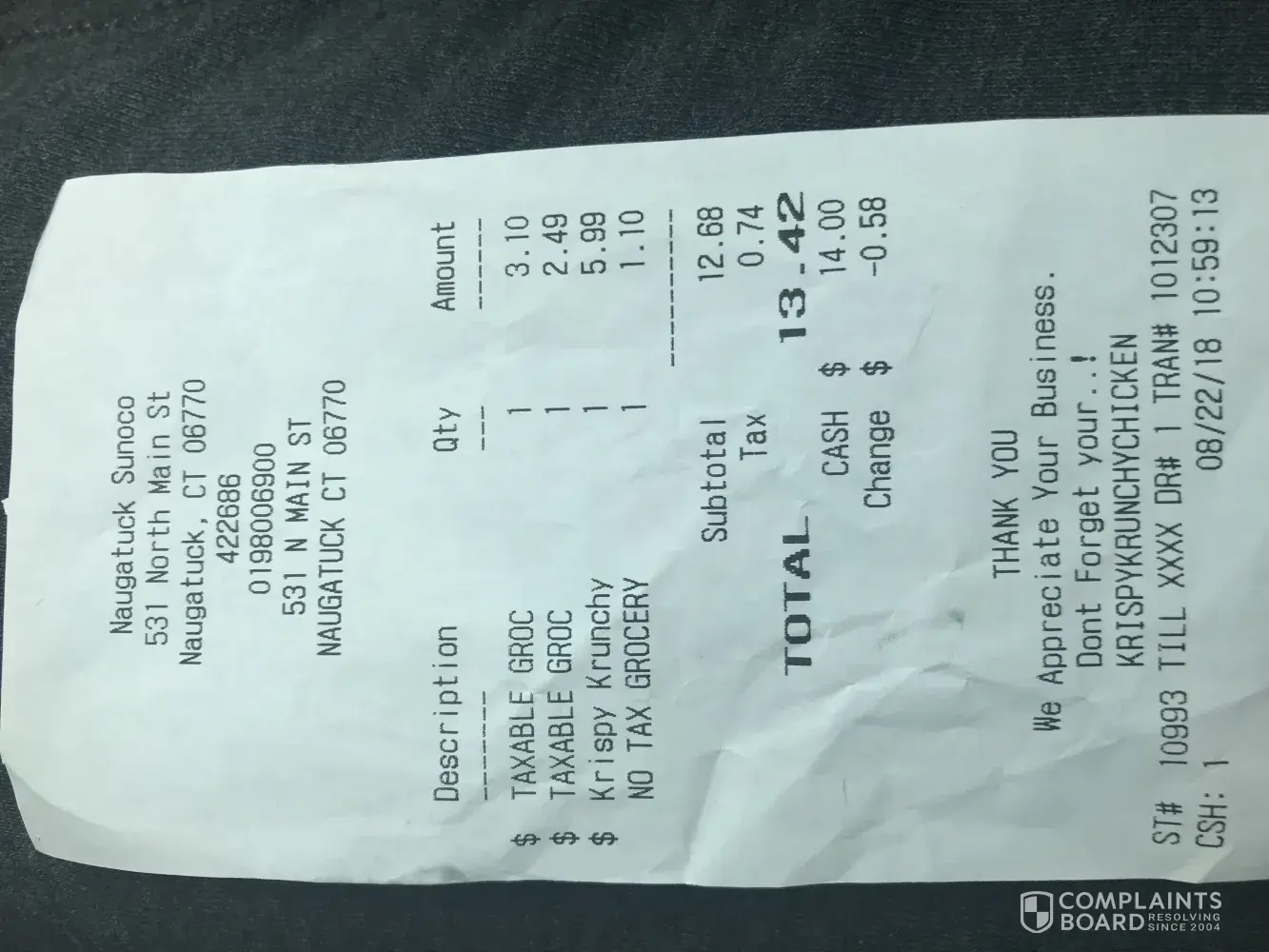 complaint about cashier