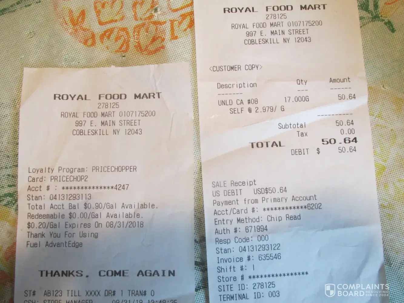i had 90c off per gallon of gas from price chopper to be used at sunoco. i went to sunoco/royal food mart at 997 e main st cobleskill ny 12043