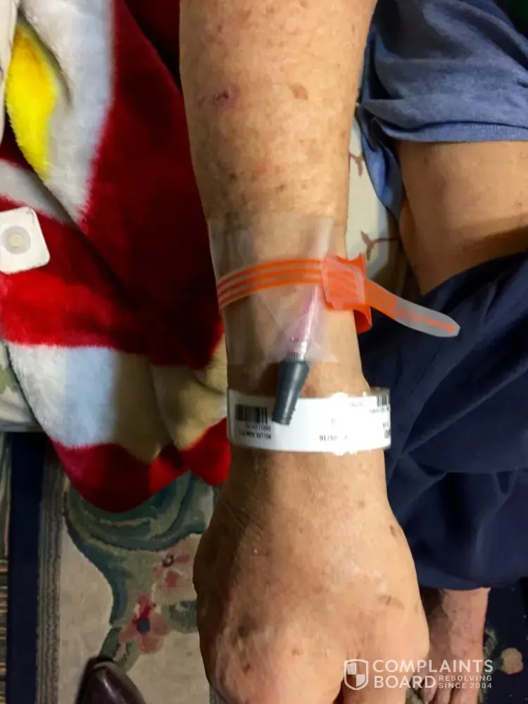 My brother was taken to Sunrise Hospital by ambulance from V.A. hospital about 16:00 hours on April 1, 2016. He had severe chest pain and was treated and released about midnight. When I got him home and went to check his blood sugar I noticed that the I.V. had not been removed from his atm. I understand that human error happens but when I called E.R. to let them know is when my mishap became a complaint. I have never in all of my 72 years been treated or talked to so rudely. The person who answered the E.R. phone needs a really good talking to by somebody. Her name was Sherry, which is all that I know but am sure you can figure out who she is. I was extremely cordial to her, just explained that I wanted to let them know to be more careful and she flat called me a liar several times. She said that they would NEVER do that so either I was lying of my brother left on his own against doctors orders. I told her that was not the case. That he was discharged properly with prescriptions and discharge papers and all she kept saying was I was lying. I was extremely flabbergasted and could not sleep until I wrote to you. Please have somebody tell this woman that She needs to learn some manners. BTW. My brothers name is Kenneth E. Miller. You can check that he was in fact discharged and did not leave against doctors orders and I am attaching a picture of the iv left in his atm so that you may show Sherry the picture when you discipline her which I hope very much somebody does. My number is [protected]. Thanks very much for listening.