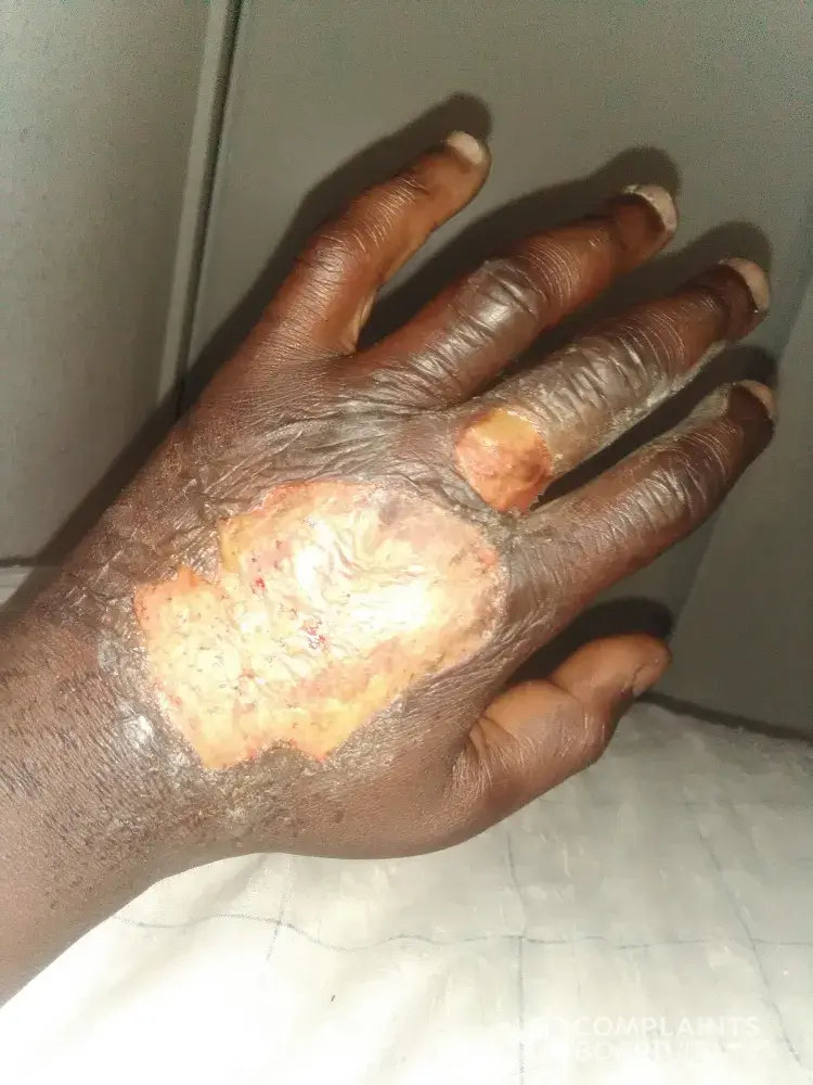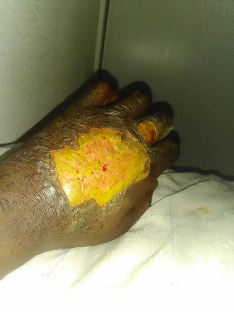Came into sunrise June 24 with a second/third degree burn to my left hand.