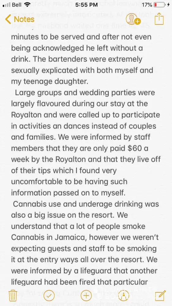I recently visited your property in Jamaica, spent a nice amount of money to get there only to be disappointed. The hotel did not seem to be 5 star, mot the best customer service, the food was not good and was given in small proportions with watery drinks. We paid to have top notch food and service, but didn't get that. ericamoore515@yahoo.com
