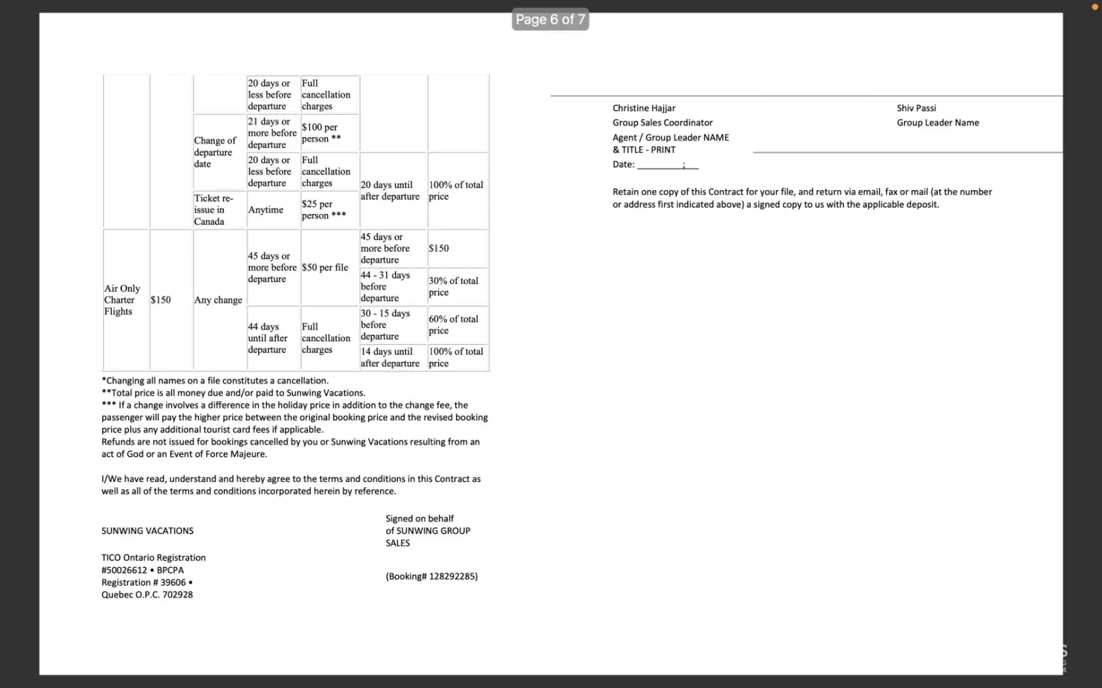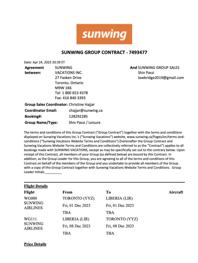 This is what we sent over to Sunwing...