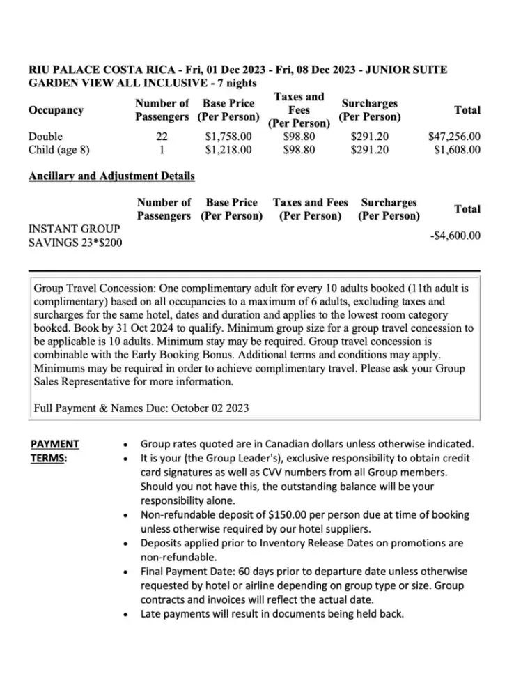 Approximately two weeks ago, we reached out to our advisor, Christine, to apprise her of a distressing situation: one of our family members was in the ICU. Regrettably, the subsequent week brought the devastating news of their passing. The trip we had meticulously planned for 23 individuals, valued at $44,200, suddenly became a somber affair.
