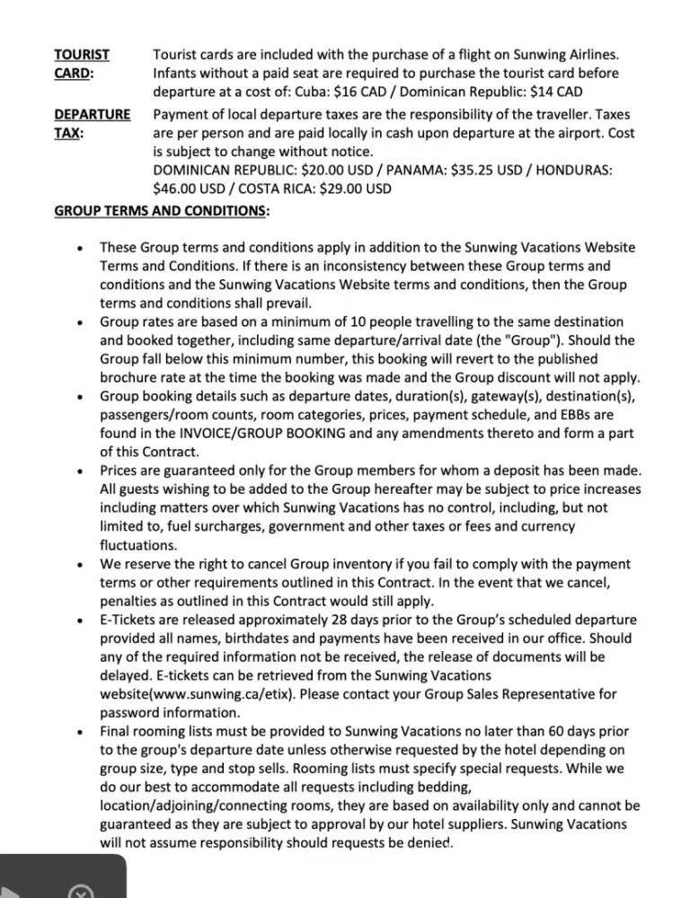 Recommendation: Do not book with Sunwing Vacations!
