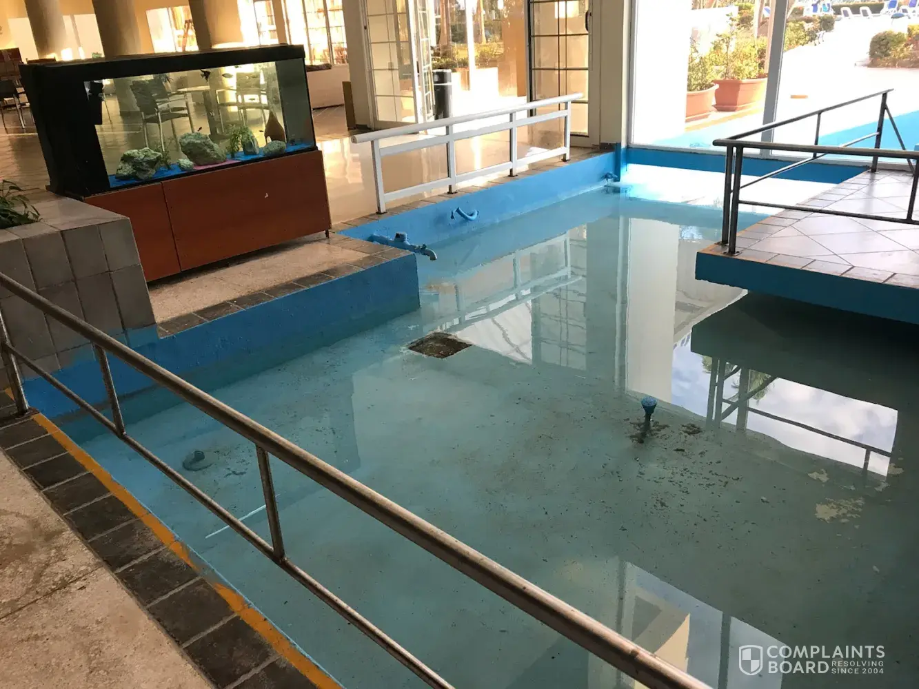 Tuesday one of the pools were closed for a day an a half. Then the bar pool was drained do to some problem but then refilled. The 3rd pool had algae all over the walls which was then cleaned. I ended up in hives due to this.