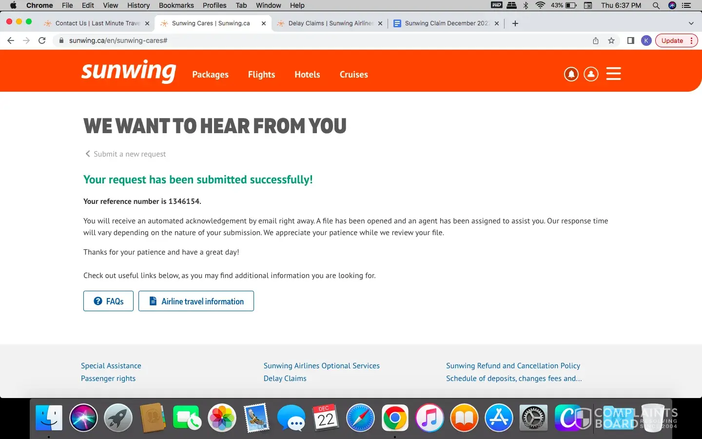 Still no reply from anyone, day 20. General email sent out from Sunwing suggesting case be opened on Subwingcares.ca. We heve done this several times and still nothing.