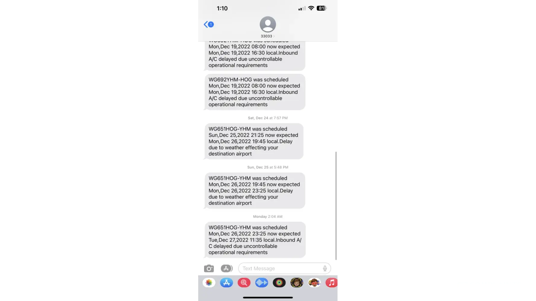Flight WG 116 scheduled for 6:15 on Dec 24, 2022. Re-scheduled by Alert to 8:15.