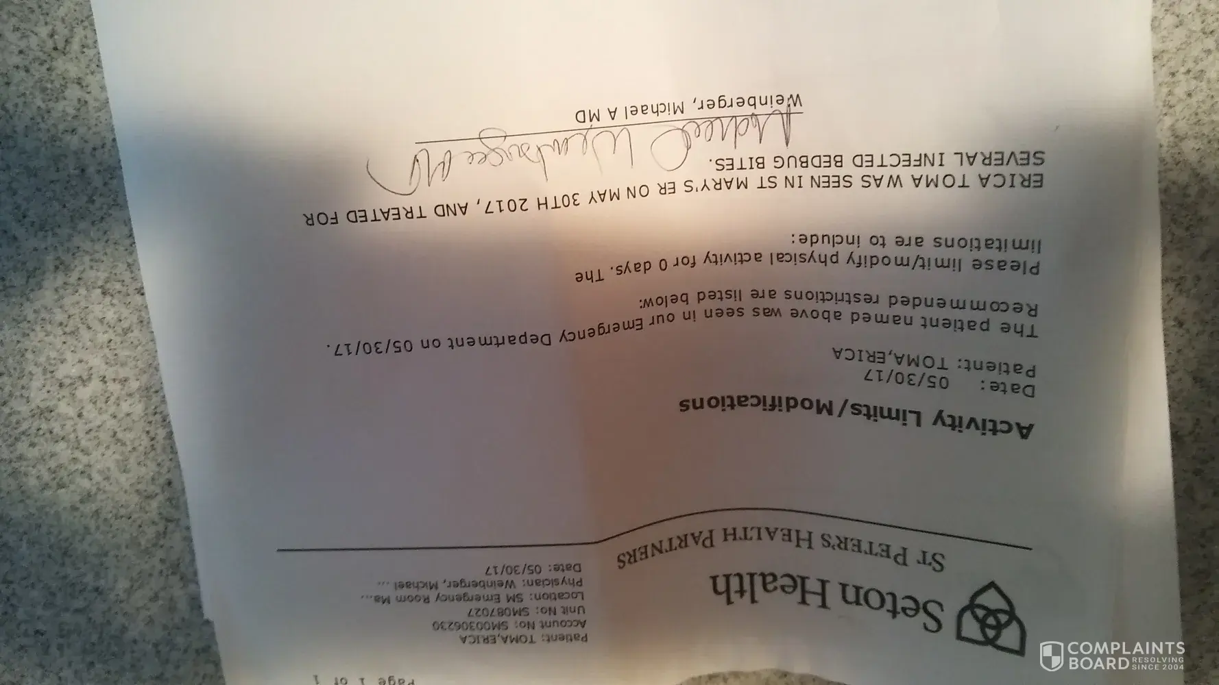 I stayed at your establishment on Wednesday July 5 through Friday July 7, 2017. Soon after leaving, myself and my 6 year old son had a red rash form on our bodies. I work in the health care system and upon researching, we had contracted bed bug bites. I have contacted management at the facility numerous times with no response. Not only do I feel I need to be compensated for my night stay, but also I was trying to alert the facility to the problem. Should I contact the department of health ?