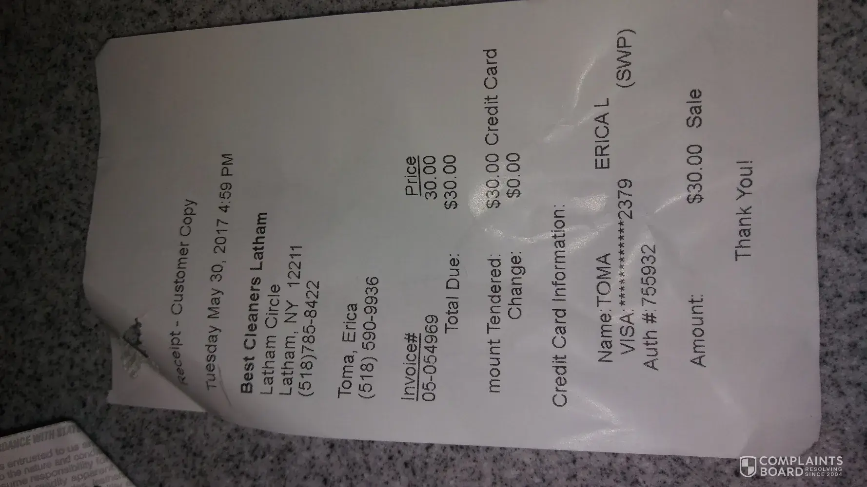 Verified customer This complaint was posted by a verified customer. Learn more