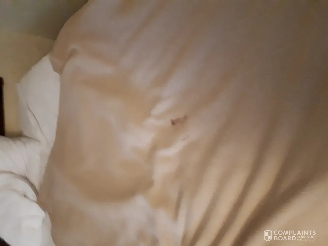 THE blanket on the bed had fecies.