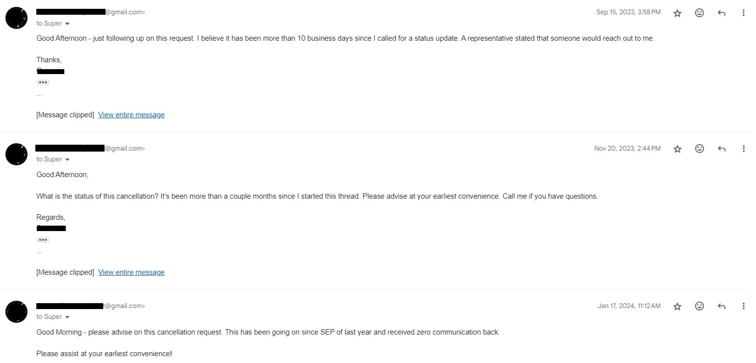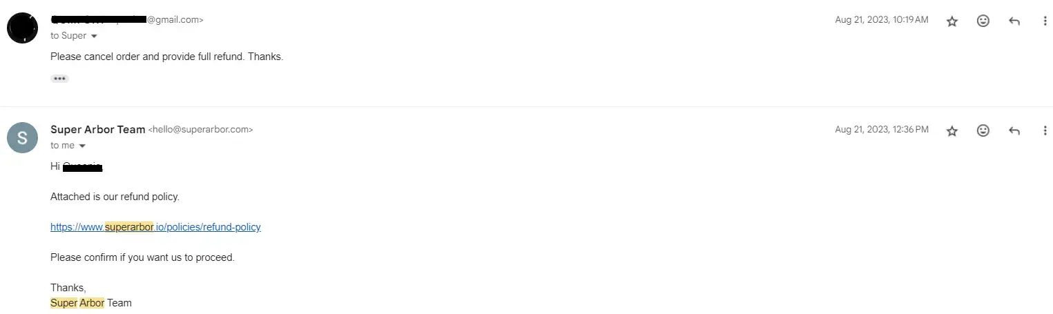 Another complain for super Arbor , after we agreed to cancel the order, they said that we were not going to charge you and to please remove the review that you put in. I tried to pull my review but didn’t get removed, and I have proved that I accomplished the request to remove the previous review. Then suddenly, I found that they charged me for something I had canceled already after waiting a month from 09-08-2023. I canceled it after the review date I put on 10-11-2023, so they contacted me to remove it and cancel the order. Now, they charged me on 10-16-2023 because the review didn’t remove. I called them, and he said I couldn’t do anything until you removed the review. What [censored]ty company shouldn’t be in the market serving hard-working people?
