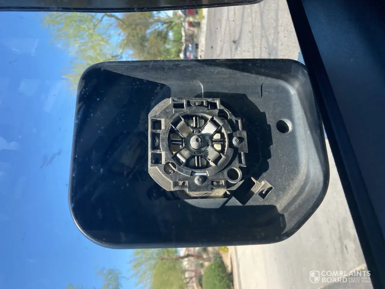 broken mirror because brush hooked and tore it off