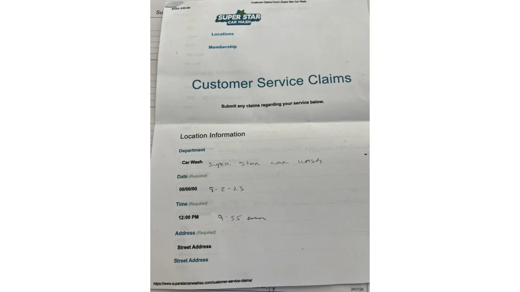 Desired outcome: PLEASE FIX THE DAMAGE CAUSED BY SUPER CAR WASH IMMEDIATELY