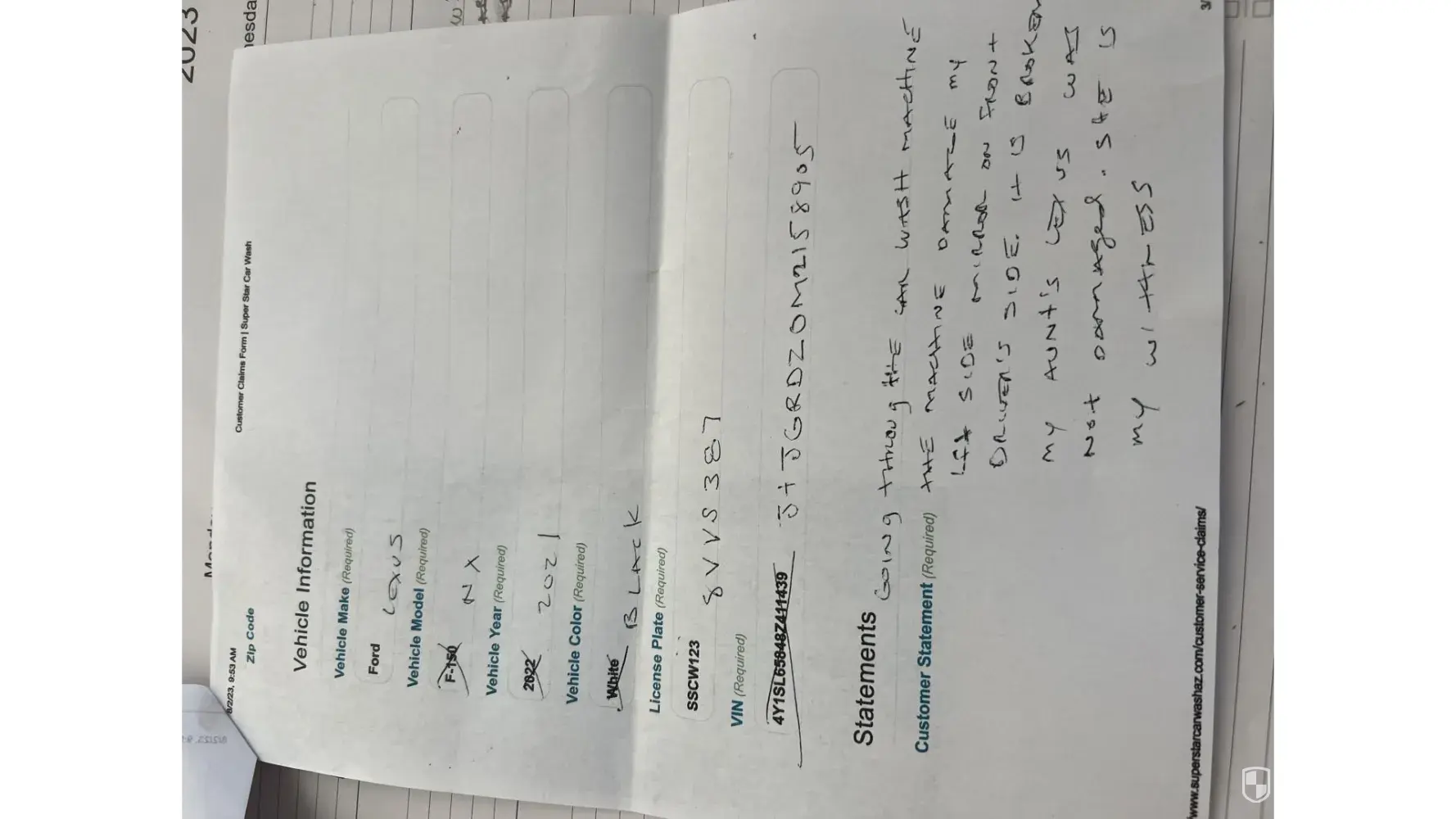 Please take note that on August 2, 2023, at approximately 9:55am, I took my 2021 Lexus, Model NX300H, LIC# 8VVS387 VIN# JTJGJRDZ0M2158909 to Super Star Car Wash located at 1662 Pacific Coast Highway, Harbor City California 90710. Upon entering the car wash site, I paid with a credit card and drove my car through the car wash for the machines to wash my car. I then drove my car to the designated drying area and Immediately noticed that the mirror on front, driver's side was bent backwards and damaged. This side mirror was so flexible that it did not lock back into the correct position. I then approached a staff member and requested to speak with a manger. The Manager listened to my concern and made a visual inspection of my car and asked that I document my concern/issue onto the "Customer Service Claims" ("Form"). I completed the Form and documented my concern/issue as the Manager requested. The Manager provided me with a copy of the Form and said someone from Customer Service Claims will contact me within 48 hours. Also know that my aunt, Judy Cunningham at [protected] was also present when Super Star Car Wash damaged my car and she may serves as a witness to this incident. YOUR IMMEDIATE ATTENTION TO THIS MATTER IS APPRECIATED. ALSO KNOW THAT I AN UNABLE TO DRIVE MY CAR AS THE DAMAGE MADE TO MY CAR IS SAFETY ISSUE RELATED AND THE COLLISION WARNING LIGHT IS NO LONGER WORKING. MADISON HERMOSILLO at [protected]