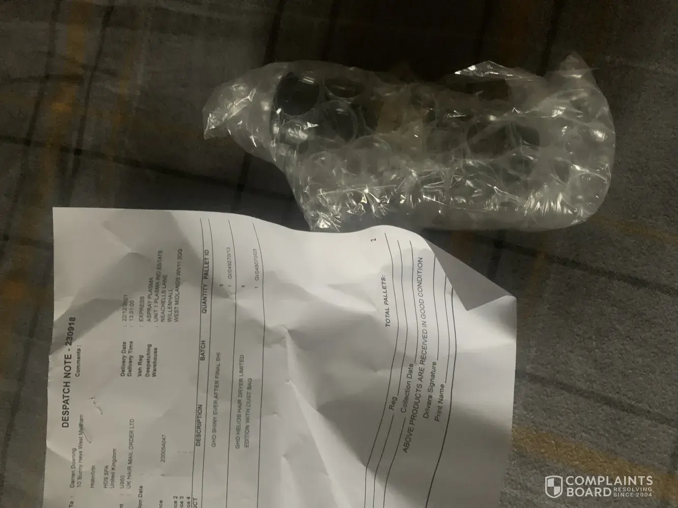 I only had part of my order delivered which this is clearly shown in the pictures from DPD & contents of the box. The packing slip isn't even signed which clearly the person doesn't want to be known / challenged regarding the missing item (hairdryer). This is my last port of call before I contact the CEO directly / social media on this issue