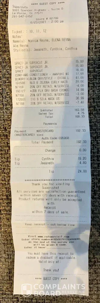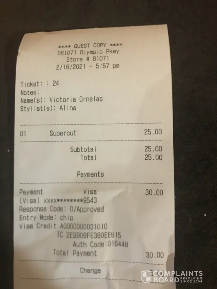 Read full complaintAbout Supercuts