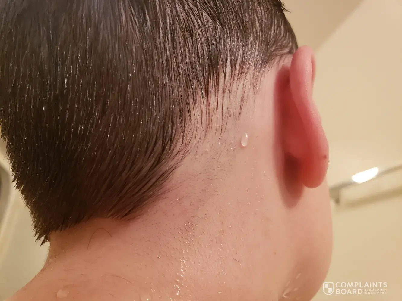 hair hit me in the right eye with the end of the scissors. Went back to show that