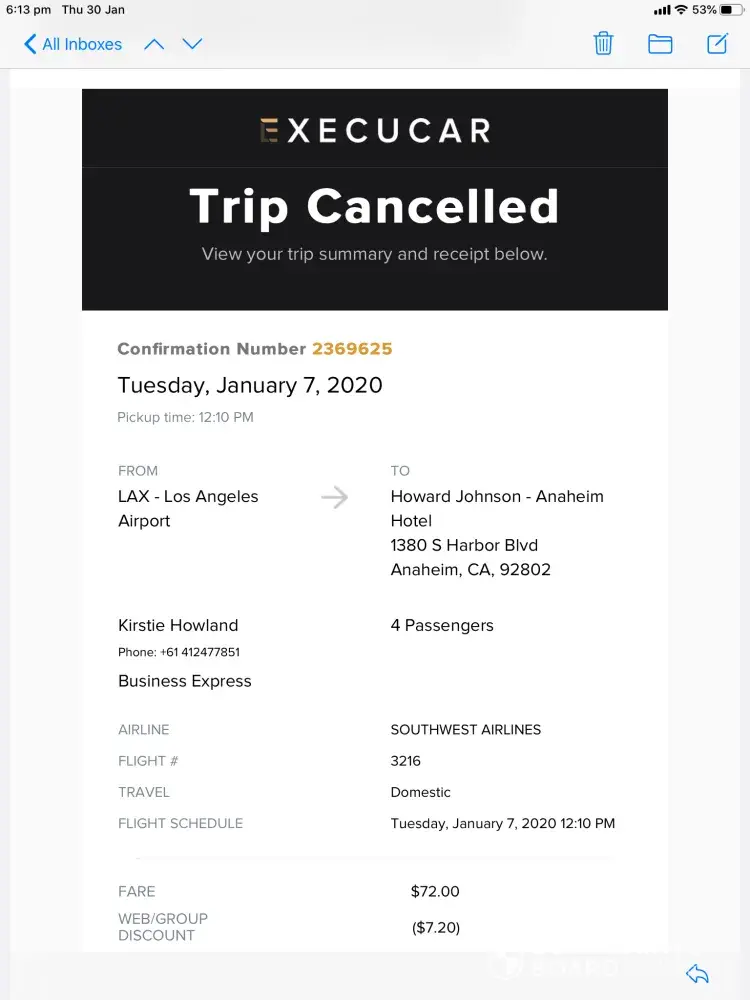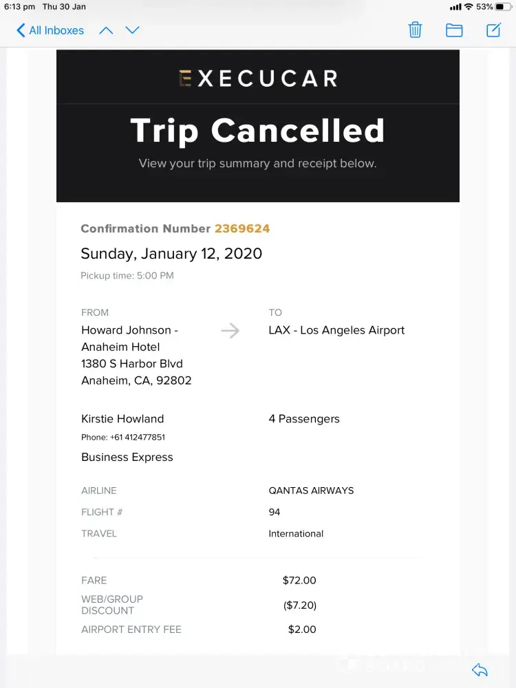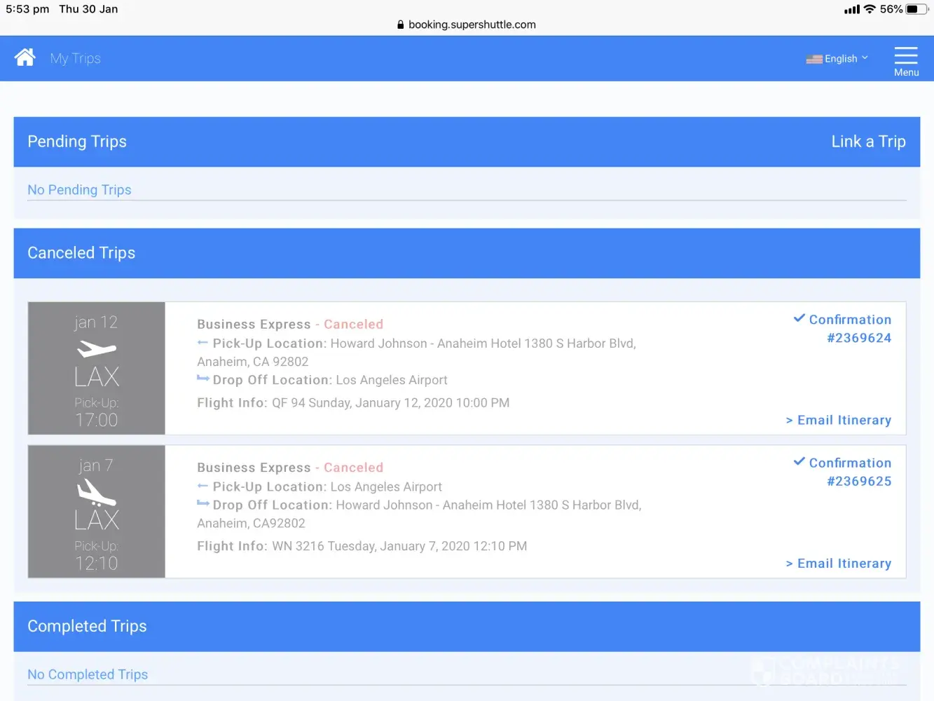 pre paid for a service lax to anaheim and return for january. cancelled as supershuttle out of business in lax. full refund not received