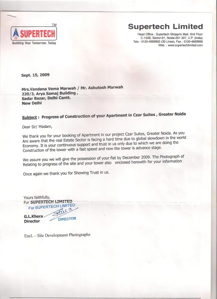 Anyway, I have provided proof to Mr GL Khera, Mr. Anil Kapoor, Mr. Dharmandra Kumar, Mr Deepak Vohra, Miss Pooja Diwaker and many more people in Supertech. I provided them all the documents on June 17, 2014 via an email that clearly proves it (attached here), but it seems proof makes no difference for them. Not sure why to ask for the proof when it makes no difference.