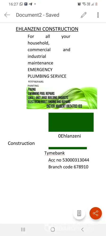 Read full complaint and 8 commentsEhlanzeni Construction - Services deposited, but work not commenced